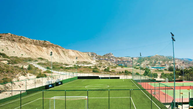The resort overlooks the Aegean Sea and a sandy beach, and has a huge outdoor swimming pool and Adventure Land splash park with waterslides (height restrictions apply).