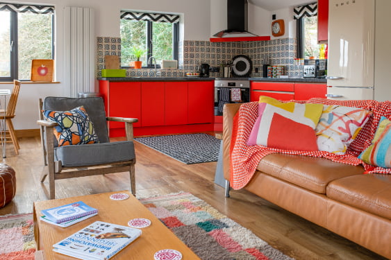Hillside sleeps 4 in 2 bedrooms.  It is a private haven overlooking the fields, perfect for wildlife watching. The conservatory with its comfy chairs is an ideal place to soak in the views with a glass of wine in the evening. It’s also handy if you’re bringing your dog on holiday with you, as there’s plenty of space to dry them off after those long, lovely, muddy walks!