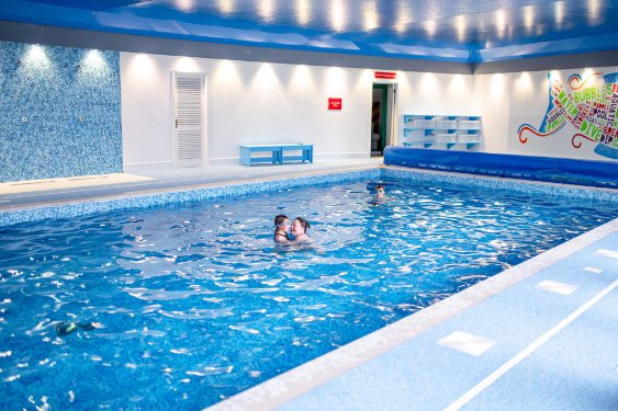 • Taking a dip in the heated indoor swimming pool – floats and toys available.