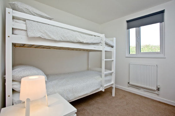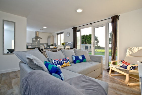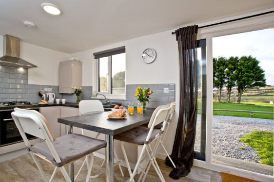Wheel Rose is a cozy hideaway for families looking for a family friendly lodge in Cornwall. There is a fantastic open plan living area with kitchen and dining facilities, plus a comfy sofa and chairs for a family of 4. The lodge has modern interiors and luxury touches throughout as well as a little garden and hot tub – perfect for a relaxing family holiday!