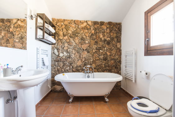 Casa Almendra is a lovely 2-bedroom house which is deceptively spacious inside. The comfy sitting room has a widescreen TV with Freeview and DVD player. The open plan dining / kitchen area has an oven, gas hob, microwave, fridge/ freezer, washing machine and dishwasher. Toddlers will love the little area in the hallway which has toys to keep them entertained. One of the bedrooms is downstairs (next to the toy area!) and has an ensuite shower room. Upstairs there is a stunning master bedroom with an ensuite with a roll top bath.