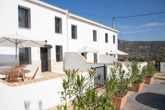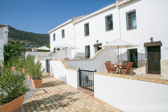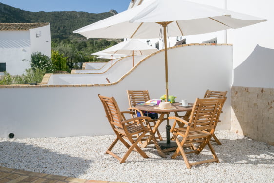 Casa Oliva is the largest of the cottages at Casas Almoros and has 3 bedrooms and 3 bathrooms and full air conditioning. There is a playroom packed full of toys, large private courtyard with a BBQ and a walled garden at the front of the cottage.