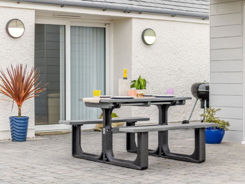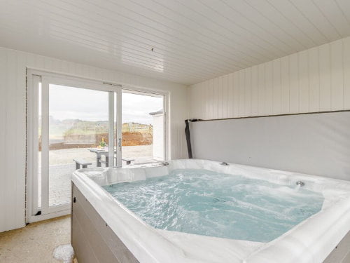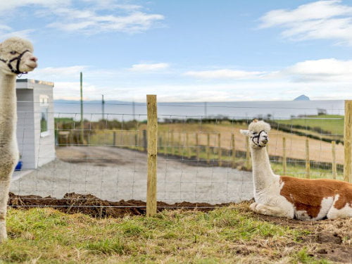 The garden is fully enclosed with a private hot tub located in the summer house. There is also a picnic table and charcoal BBQ. The small play area has swings and a slide. Families are welcome to meet the friendly alpacas which live at the farm.