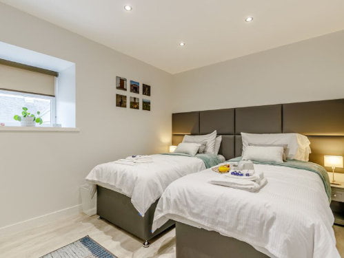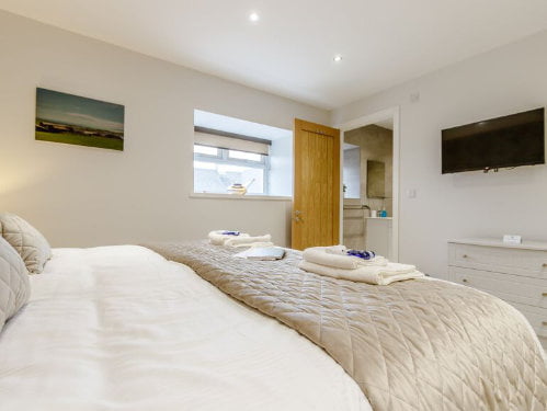 The is a twin bedroom which has bags of room and a smart TV – plus there is bathroom with shower and toilet next door. The master bedroom has a super king size bed, storage space, Smart TV and ensuite shower room.