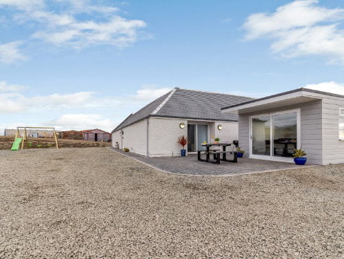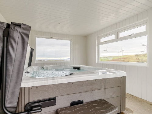 Amazing 5* cottage with 2 bedrooms and hot tub with stunning views to the Isle of Arran. Enclosed garden with swings and slide and close to sandy beaches.