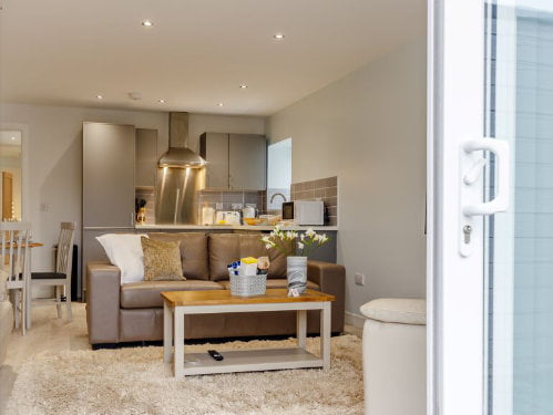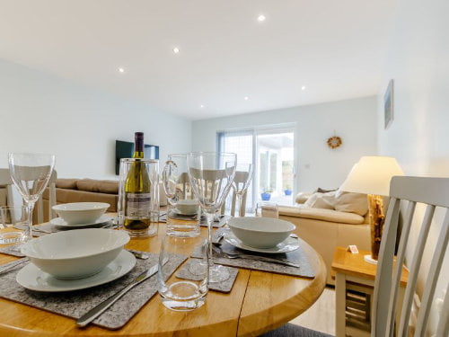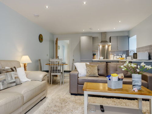 The cottage is all located on 1 storey and has a light and airy open plan lounge / kitchen / diner with a Smart TV and French doors leading to the patio. The kitchen is ideal for cooking family meals and has an electric oven and hob, fridge freezer, microwave and washing machine.