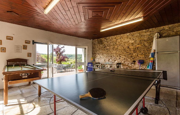 It has a large dining room with a wood burning stove, large sitting room, separate snug and large well-equipped kitchen with an American fridge freezer and dishwasher. Families will love the private games room with bar billiards and table tennis. There are 2 big double bedrooms with ensuite facilities, a single room and 2 further bedrooms with ancient beams and twin beds. Outside there is a private south facing terrace and lawn complete with hot tub, BBQ and garden furniture.