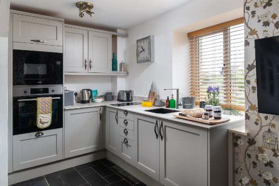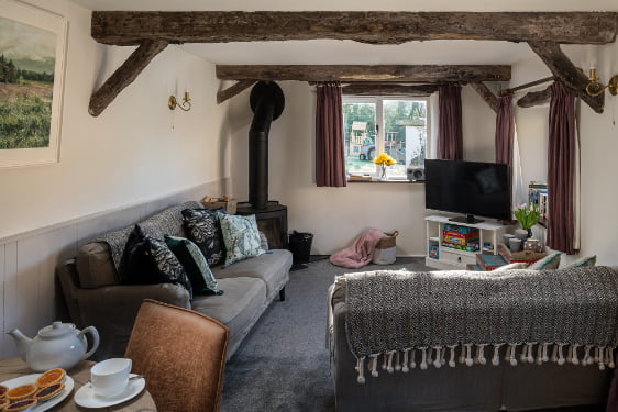 Aylesbury Cottage is a lovely stone built cottage with 2 bedrooms and 1 bathroom. There is a large open plan living room (with TV, Apple TV and log burner), dining room and a well-equipped kitchen with a dishwasher. Dining facilities for larger groups can be set up at Aylesbury if multiple cottages are occupied. Head upstairs to the family bathroom and 2 bedrooms – one has stunning views and a 4-poster king sized bed and the other has twin beds. Aylesbury Cottage has a private enclosed terrace with a fantastic hot tub, garden furniture and BBQ.