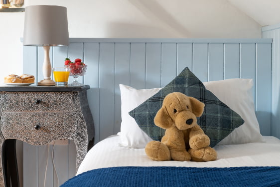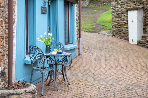 Bantam Cottage is little stone built cottage with 1 bedroom (plus a cot room) which is perfect for a holiday with a baby. Downstairs is an open plan sitting / dining room with a TV, Apple TV and log burner. It has a comfy seating area and a well-equipped kitchen with a dishwasher. The staircase leads up to the bedroom which has a king size 4 poster bed and a small cot room off the bedroom. Outside there is a communal courtyard with garden furniture which is for the use of Bantam guests only.