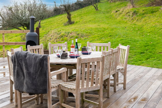 The Old Barn is a luxury barn conversion with 5 bedrooms sleeping up to 10 people (plus 2 cots). This barn was beautifully converted about 12 years ago and has just been extensively refurbished. The cottage has its own private hot tub on a huge private deck complete with 2 sun loungers, 2 outdoor dining areas, BBQ and fire pit.