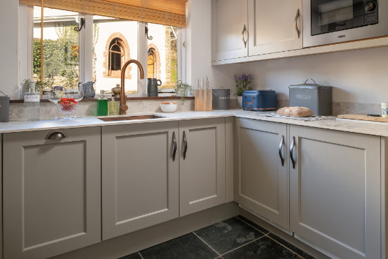 The Old Farmhouse sleeps 6 in 3 bedrooms plus 2 cots and has its own private hot tub. It is believed to date from the 16th century and is characterised by old beams and a listed staircase. It also has its own south facing lawn and terrace with outdoor seating, BBQ and hot tub. The cottage also has a spectacular kitchen with a washing machine, dishwasher, fridge, freezer, microwave, Range cooker and double oven. Leading off the kitchen is a large L shaped sitting and dining toom with a wood burning stove, comfy sofa, dining table and chairs. There is also a TV and Apple TV. The main bedroom has a super king size bed and a marble lined ensuite shower room. There are also 2 twin bedrooms; one on the ground floor with an ensuite bathroom and one upstairs next to the family bathroom.