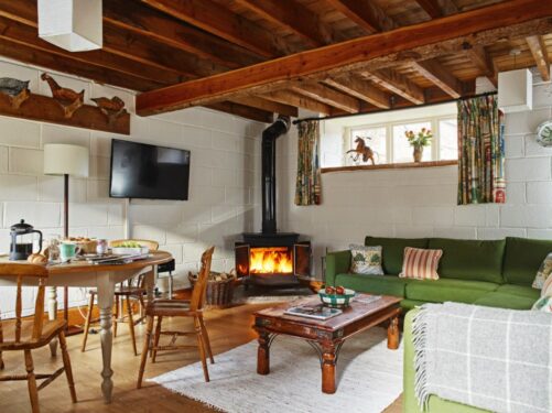 Duck’s Nest is a converted from an old stable and still retains its old features such as a lovely stable door and slate flag stone floor. There’s a beautiful outdoor patio area, comfortable living area with wood burner and a master bedroom with king size bed, bathroom and a second bedroom with bunks and a single bed.