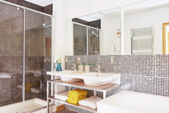 Flear House boasts an enormous well-equipped kitchen with eat-in breakfast area, complete with Aga and electric and gas cookers. And leading from the kitchen you’ll find an enclosed courtyard with table as well as the large patio with a three-burner gas BBQ and seating for ten overlooking the heated outdoor swimming pool – exclusively for guests of Flear House.