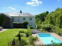 Flear House is a magnificent Devon country farmhouse with a private swimming pool, superb dining hall, elegant drawing room and snug.