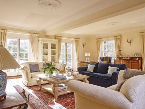 The Stables is a light and airy cottage with beautifully renovated bedrooms and a modern bathrooms. The master bedroom has a family wet room with large walk-in shower and upstairs there are 2 further twin bedrooms. There’s a pretty courtyard entrance and private south facing terrace overlooking the exclusive rear garden – the perfect place to relax after a busy day.