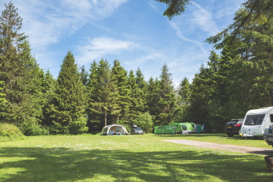 The 5 acre field is a grassy field where you can spread out and find your perfect pitch. It is a little bit further to walk to the facilities (300m) but you can enjoy the beautiful forest surroundings, and due to the lack of light pollution, you can also do some stargazing!