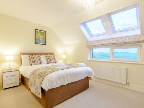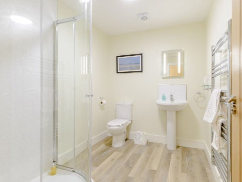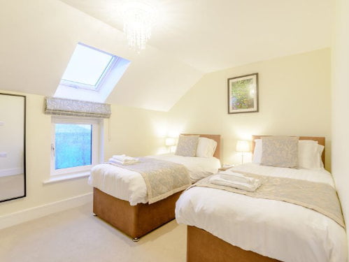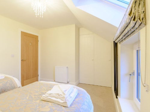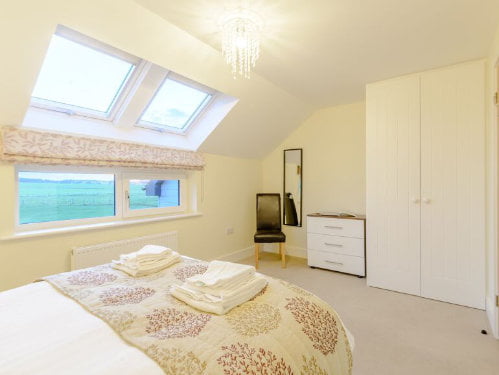 Upstairs there are 2 bedrooms; one double and one twin with sloping ceilings. Both bedrooms have dual windows and countryside views and share a shower room and WC.