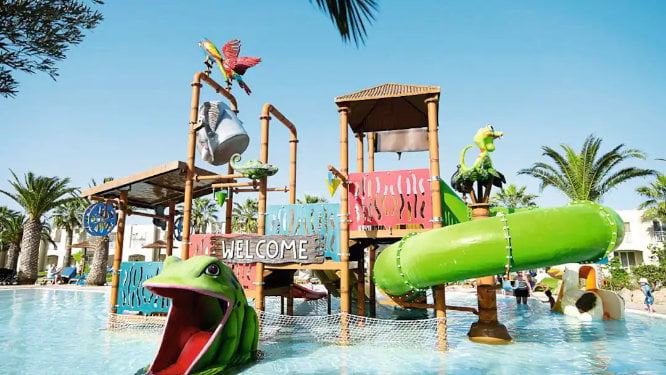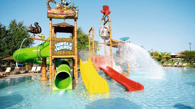 There are 3 massive swimming pools including a massive lake style one and an activity pool. Toddlers will love the Splash Park with its tipping buckets, fountains, slides and sprays. There are help-yourself drinks stations dotted around the gardens which makes it easy to keep little ones cool.