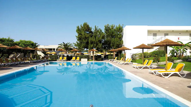 Away from the pool, there is a special playground for under 6’s and a packed entertainment schedule. The Kids Club is for childen aged 3+. The rooms at the Holiday Village are bright and stylish. For extra space you can book a family room and opt for a duplex or partition which separates the double bed from the singles.