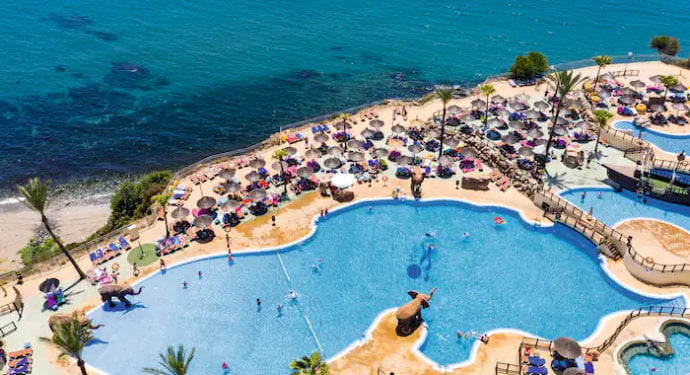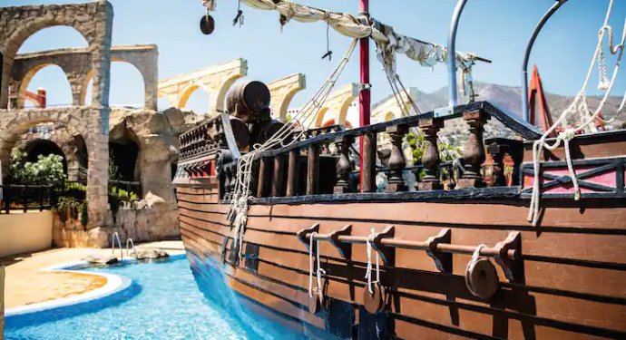 4* hotel on the Costa Del Sol with a giant pirate ship splash park, playground for under 6s, mini disco and swim academy for children aged 3+.