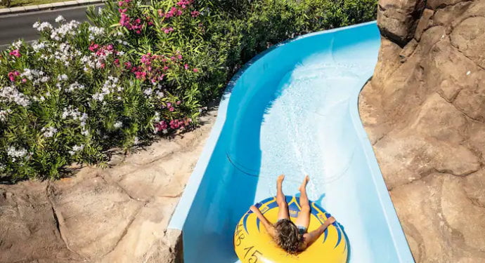 The Holiday Village also has 5 swimming pools with inflatable dinghies, splash pads and fountains all adding to the fun. There’s also the hotel-run HV Club kids’ club for 3-8 year olds and a regular entertainment programme.