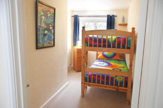 The front door opens out onto an enclosed private courtyard with barbecue and seating area. Upstairs are 2 bedrooms, one double and one bunk room and the bathroom with bath and shower.