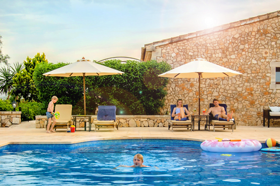 • Keeping cool and splashing around in the amazing swimming pool at Hotel Rural Migjorn – little ones will love the pool!