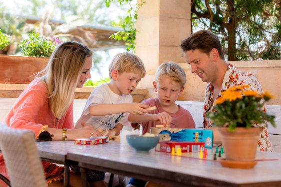 • Playing with the toys which little ones can borrow at Hotel Rural Migjorn