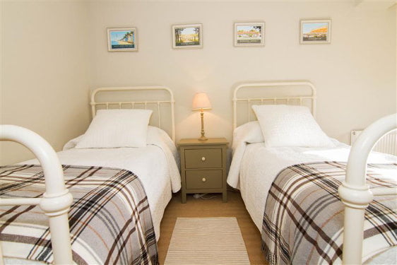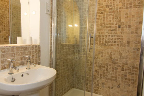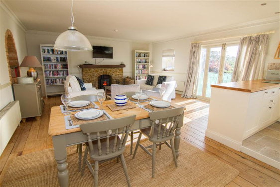 There are 2 double bedrooms downstairs and the master bedroom has French doors leading to the enclosed south facing garden – perfect for a morning coffee!  The 2nd bedroom has a king size bedroom with a sofa bed which is ideal for up to 2 children.  There’s also an ensuite shower room with a walk-in rain shower, WC and heated towel rail plus a family bathroom with bath.