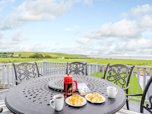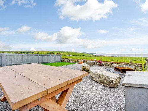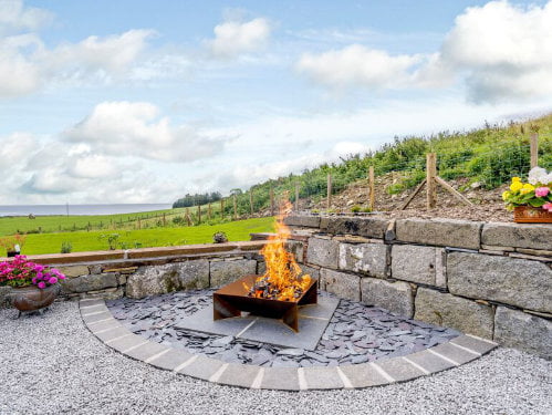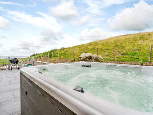 Outside there is a large patio area with astro turf and the wonderful hot tub with sea views. There is also a BBQ, seating area and a fire pit. There is also ample parking.