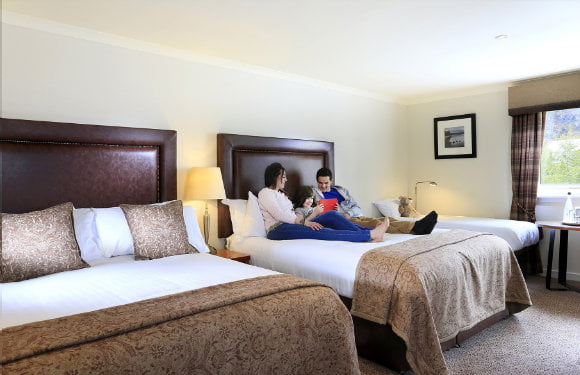 The 18 spacious woodland lodges are ideal for families wanting the flexibility of self-catering accommodation.  They are located in ancient Caledonian pine forests and include the use of the resort’s fantastic facilities.  The lodges can sleep up to 6 people with 2 and 3 bedroom options, bathrooms, a kitchenette with microwave, fridge and hob. The 3 bedroom models also feature a log burner.  Plus families can enjoy breakfast at the hotel every morning – this is a perfect option for families looking for hotel facilities and self-catering independence.
