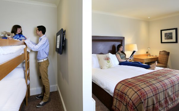 The Highlands Hotel is a 4* family friendly hotel at the Macdonald Aviemore Resort which is handy for the swimming pool and leisure facilities at the resort next door.  There are family rooms which sleep up to 3 and 4 people and interconnecting rooms for larger families.   All rooms have WIFI, Elemis toiletries and include breakfast.
