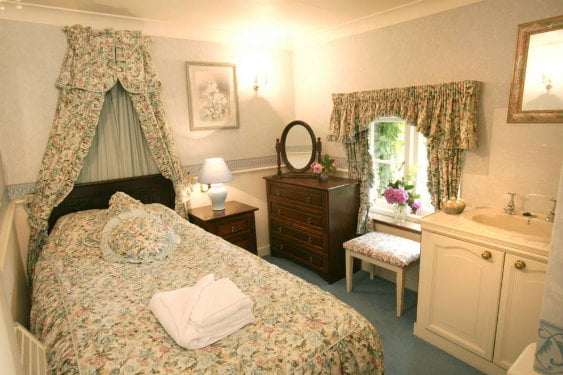 Upstairs there is a double bedroom with a 4-poster bed, a single coronet bedroom and a bathroom.