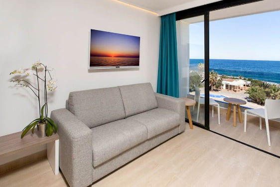 This four-star hotel is a favourite for families as it has a fun splash park with shallow water, fountains and a small spiralling slide. It’s also just 400m from the beach.