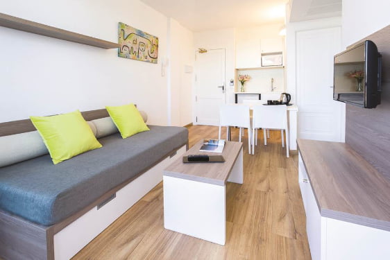 Little ones can spend their days cooling off in the splash park or in the swimming pool – and the beach is a short walk away too.  The rooms at the Marvell Club Hotel & Apartments are ideal for families.