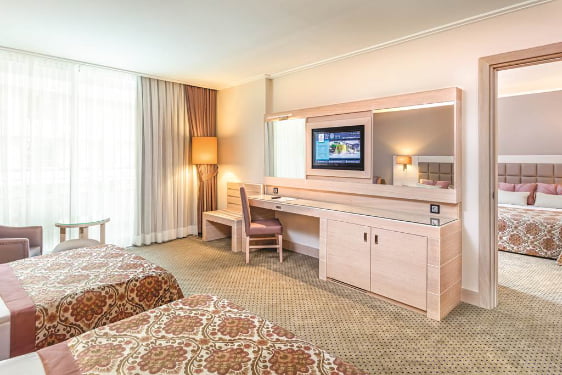 Parents can chill out in the Spa and enjoy the food in the hotel’s 11 restaurants (which includes 6 a la carte restaurants). Interconnecting family rooms and all inclusive are available.