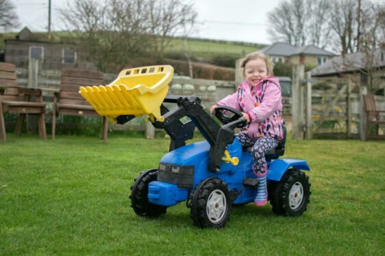 • Playing in the fab play area which includes a pretend tractor, wendy house and climbing frame (there is a bench for parents to sit on whilst they are watching!).