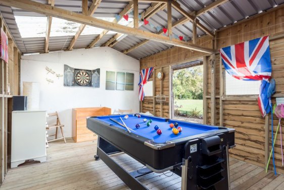 Superb 3-bedroom house set in 2 acres of grounds with 3 patios and 2 BBQs. Sports pitch, games room and playground too. Just 5 mins drive from the beach.