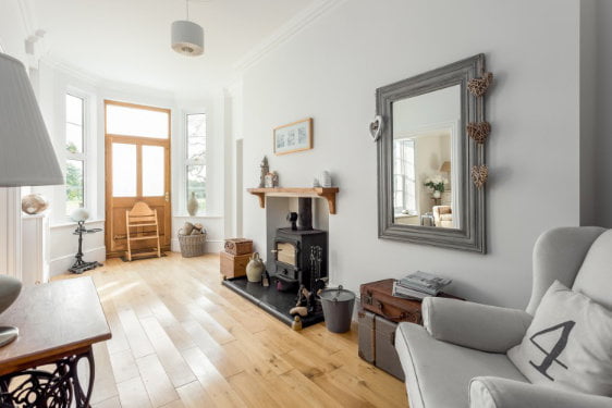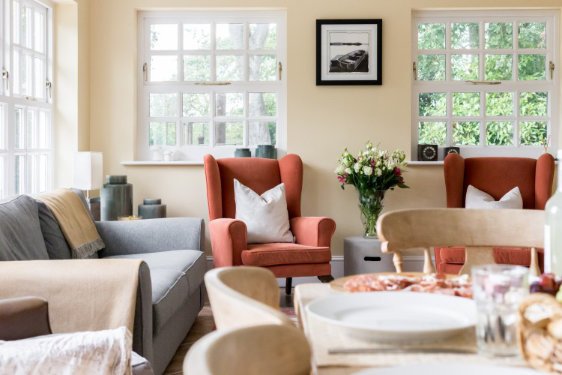The hall has a toasty log burner, bookcase and more comfy seating for relaxing.