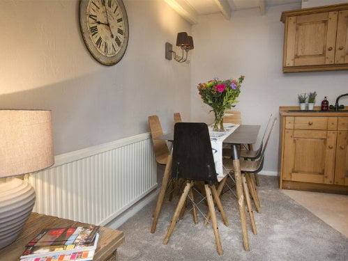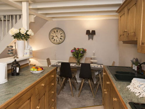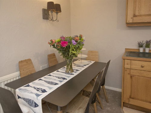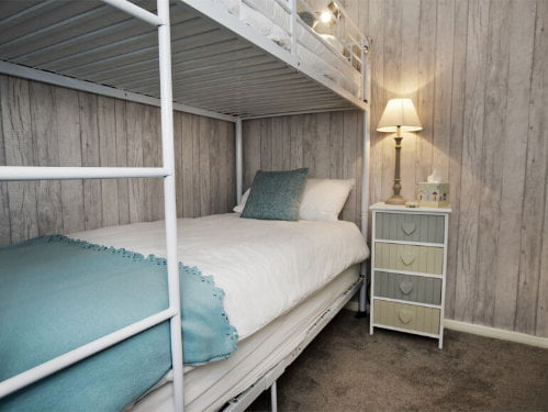 The cottage has an open plan living area with a lounge / kitchen / diner. The lounge has a wood burner, TV and comfy seating making it ideal for relaxing. The kitchen is fully equipped with everything a family needs including an oven, washing machine and fridge with an ice compartment. Upstairs there are 2 bedrooms including a master bedroom with king size bed and a bunk room which is perfect for toddlers and preschoolers. The family bathroom has a shower over the bath and a WC.