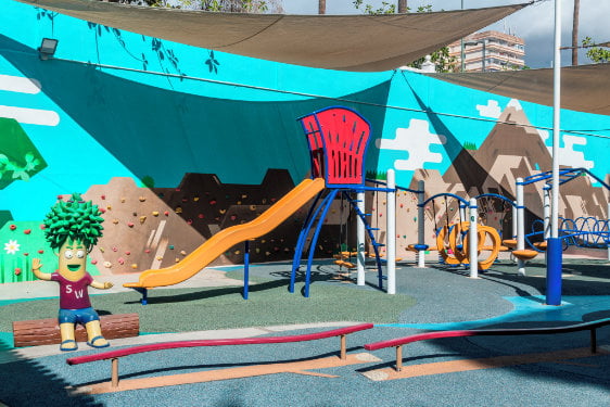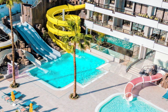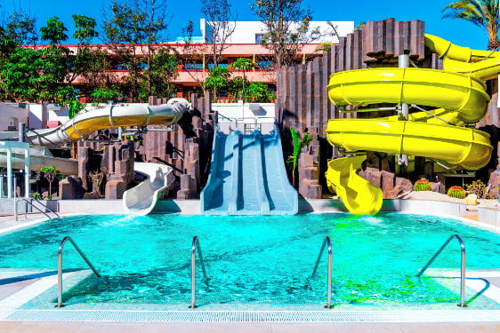 Welcome to the Spring Hotel Bitacora in Tenerife! This 4* family friendly hotel is in a great location close to a gorgeous sandy beach and bustling Playa De Las Americas with its bars, restaurants and shops. Little ones will love cooling off in the 2 kids swimming pools with waterslides and best of all – playing at the amazing Springlyworld Adventure Park which has over 95 activities for them to have a go at! The Spring Hotel Bitacora is a great choice for families looking for a family friendly hotel in Tenerife with plenty to keep little ones entertained!