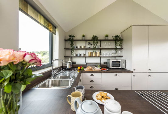 The Hoods has an open plan living / dining / kitchen area which is perfect for families who will enjoy the space. The kitchen is fully equipped with an electric fan oven and grill, electric hob, microwave, dishwasher and fridge-freezer.