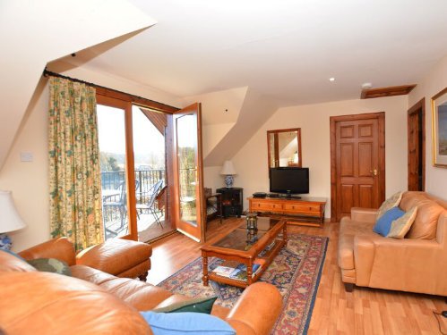 The comfy lounge area has a TV and DVD player and doors leading out to the balcony with outdoor furniture and stunning riverside views. There is also a shower room and 2 additional twin bedrooms.