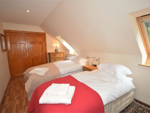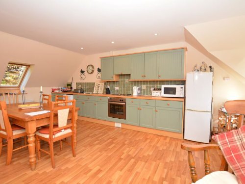 Upstairs there is a bright open plan lounge / kitchen and dining area. The kitchen is very well equipped with an electric oven, hob, dishwasher, microwave, fridge / freezer and dining table which can seat up to 8 people.