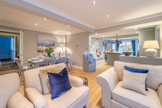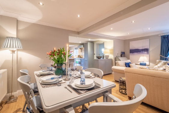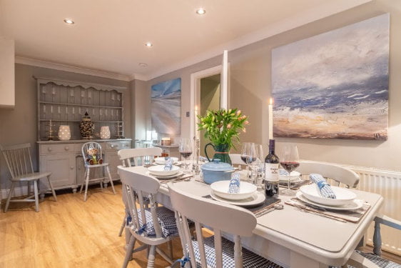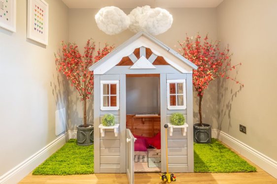 The Malthouse is a superb baby and toddler friendly cottage in Norfolk. It has super stylish interiors including designer wallpaper, award winning mattresses on the beds and super soft towels. Little ones will love the amazing playroom with its dolls house, playhouse, play kitchen, mini kitchen, mini piano, toys, TV and even its own fairy door!