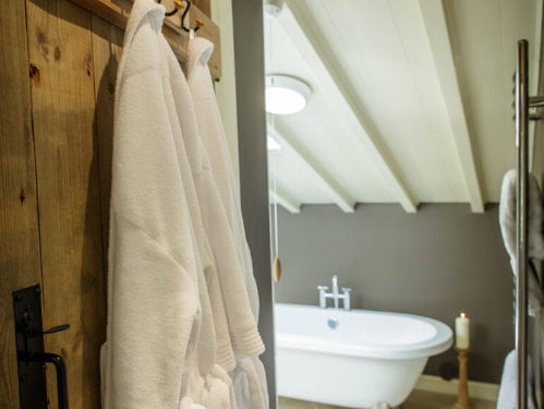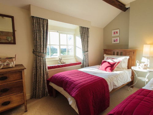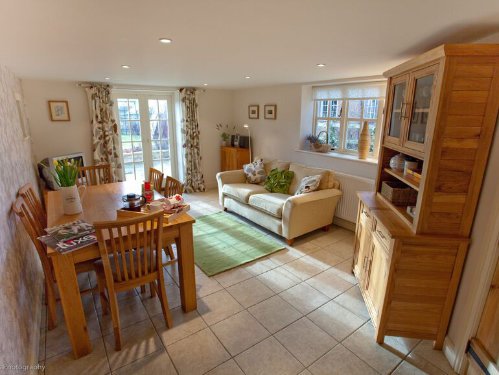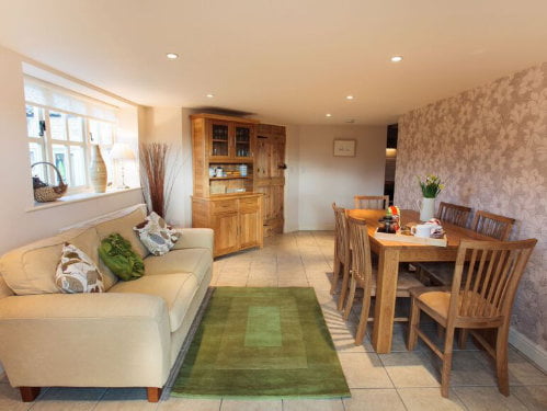 Upstairs there are 2 bedrooms with lovely countryside views. The master bedroom has a king size bed and a twin bedroom is great for children. The family bathroom has a bath, walk in shower and WC.