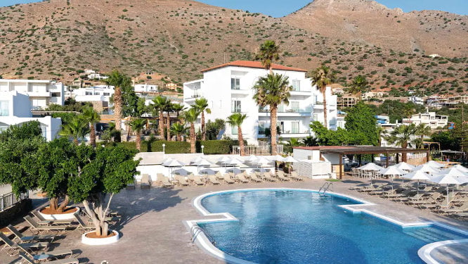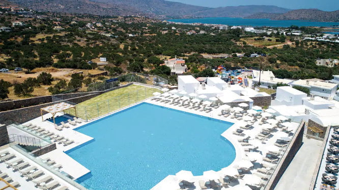 The newly refurbished TUI Blue Elounda Breeze is tucked away on the outskirts of Elounda, just a 5 minute walk from the beach.