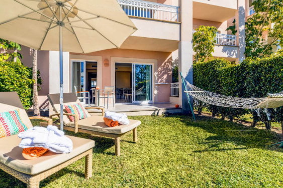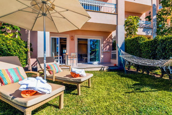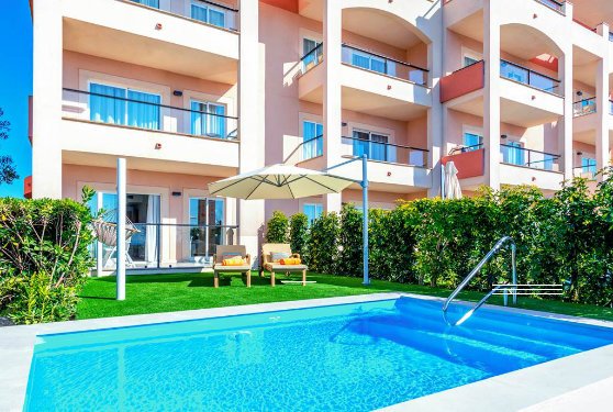 Families can stay in a range of 1 bedroom apartments – some of which have their own private swimming pool!