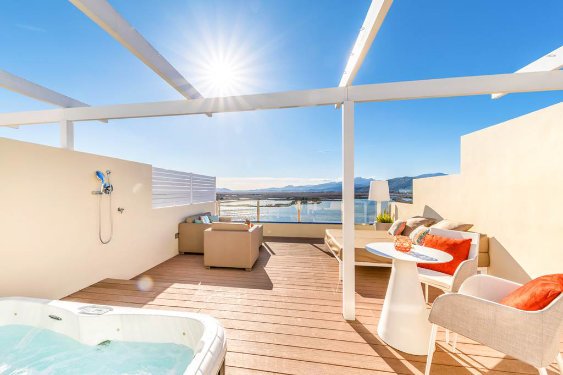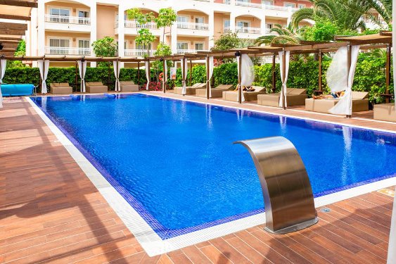The VIVA Blue & Spa is a super popular hotel for babies and toddlers just minutes walk from beautiful Alcudia Beach which is one of the best beaches in Majorca for little ones.