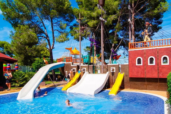 The hotel has a fantastic pirate ship themed swimming pool and a shady baby pool. There is also a children’s play area – perfect for little ones who want to let off steam!